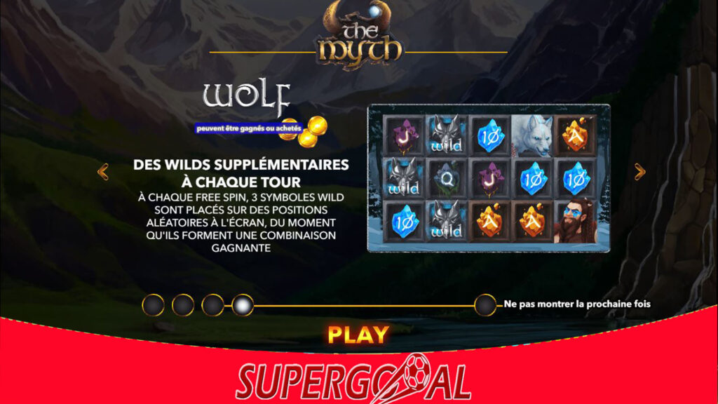 Dans la machine à sous The Myth, le symbole Wild remplace tous les symboles à l’exception du symbole Scatter. L’atterrissage de 3 symboles Scatter attribue au joueur 10 tours gratuits. L’atterrissage de 4 Scatters augmente les tours gratuits à 15, et 5 Scatters offrent 25 tours gratuits. Supergooal sans relâche, met à votre disposition et sans contrainte aucune, les jeux et promotions. Vous pouvez faire partie des heureux millionnaires à travers votre compte personnel ! Inscrivez-vous donc sur notre site maintenant et faites-vous sans limite du plaisir, un plaisir responsable !